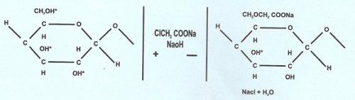CMC is produced by the reaction of cellulose with sodium hydroxide and monochloro acetic acid. Technological reasons for use.